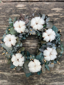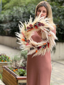 Věnec ze sušených květin s eukalyptem, pampovou trávou a lagurusem