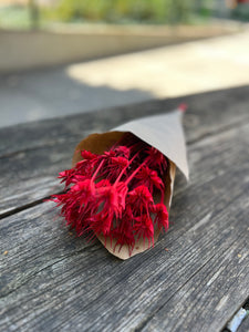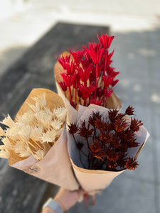 Naše sušené kytice vydrží přibližně 3 roky, stačí je uchovávat mimo dosah přímého slunečního světla, na suchém a chladném místě.